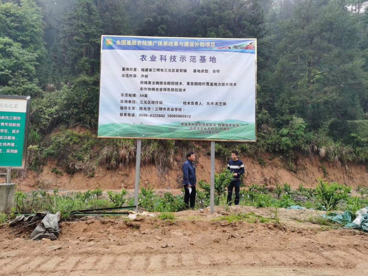 三明市三元区壹号家庭农场,位于岩前村距万寿岩景区1公里处,由福建省农村青年致富带头人吴阁墩创立。开云(中国)于2019年与该农场达成合作协议,指派高级讲师陈兆华负责牵头,组织学校相关教师,为农场的示范基地建设、柑橘栽培、农作物病虫害防治等提供技术咨询、指导服务。学校教师此次到农场,主要对永春芦柑的栽培管理及病虫害防治问题进行现场指导,还就农场的下一步规划建设,与吴阁墩交流了想法和建议。