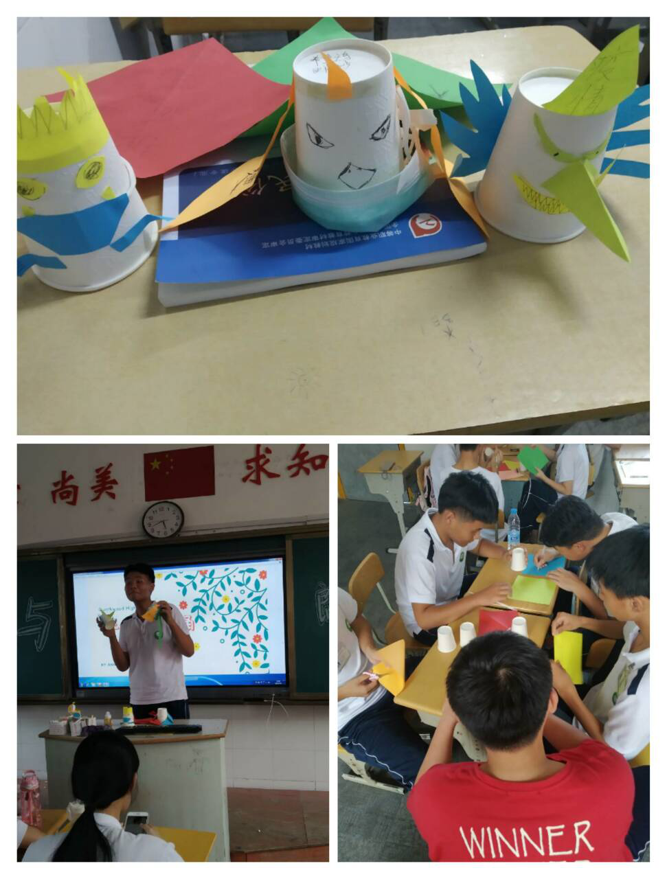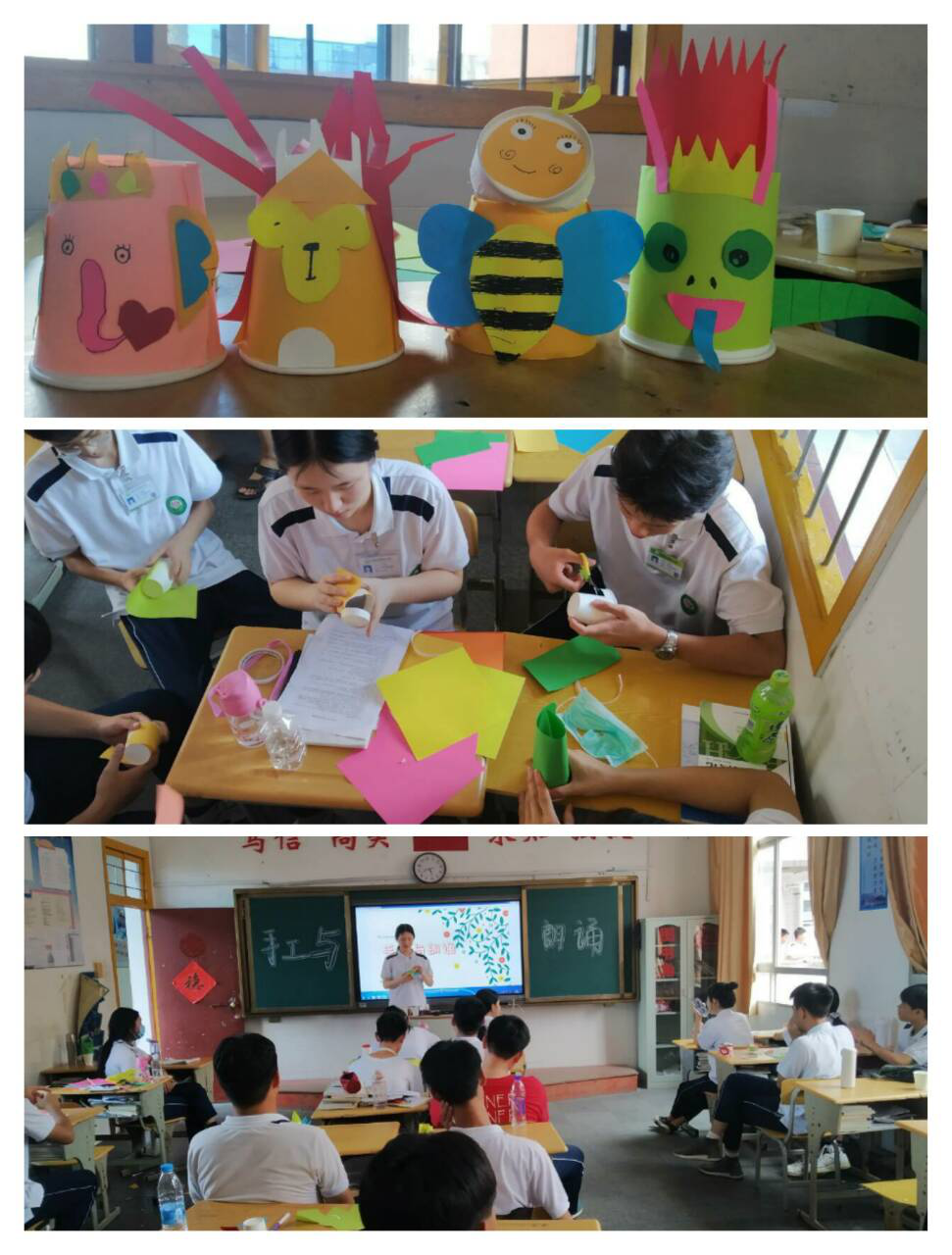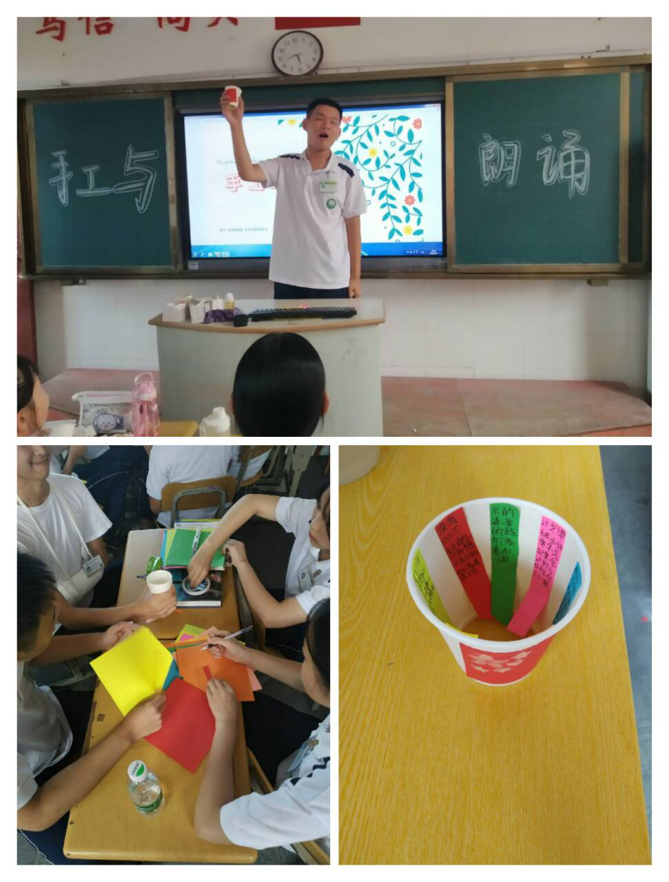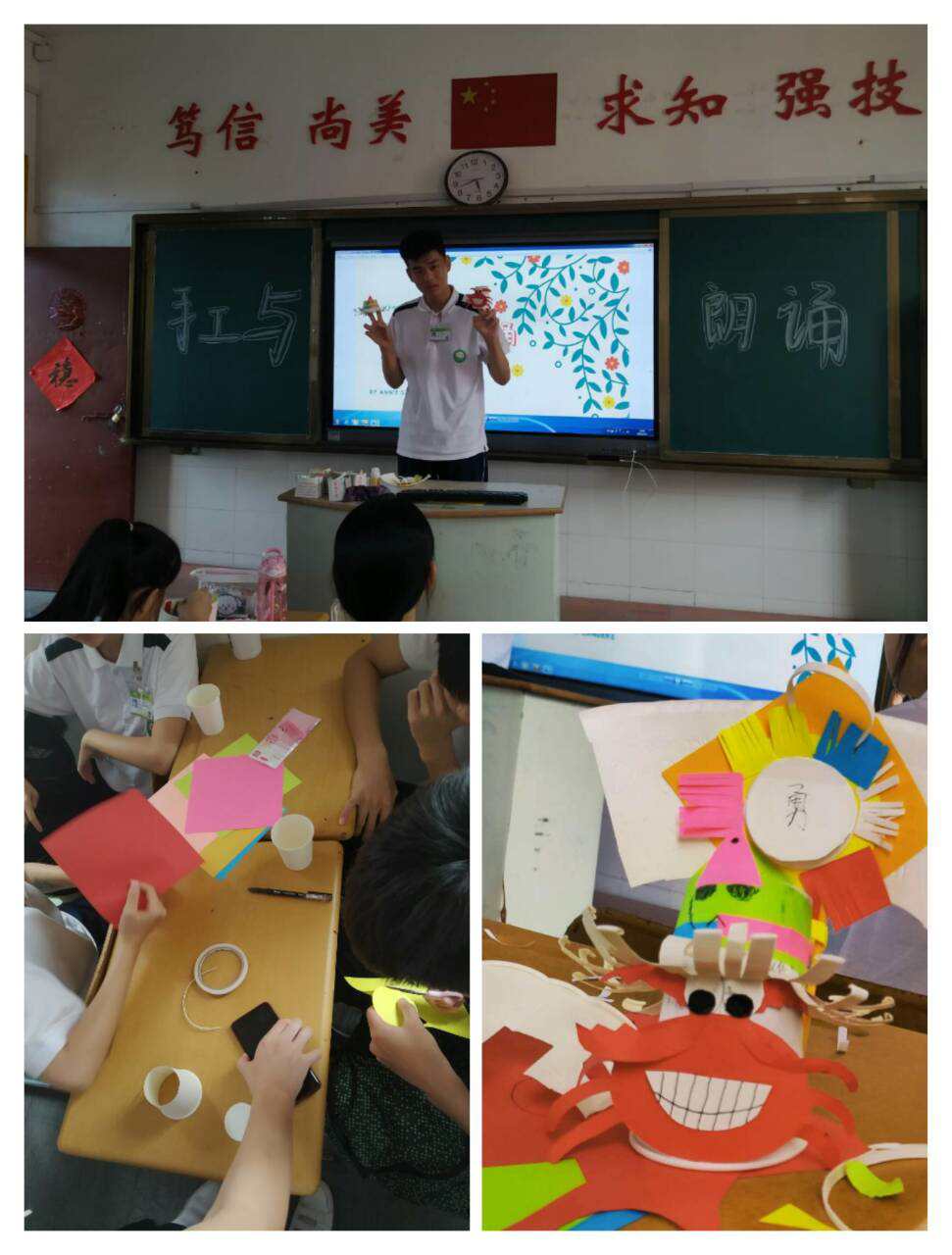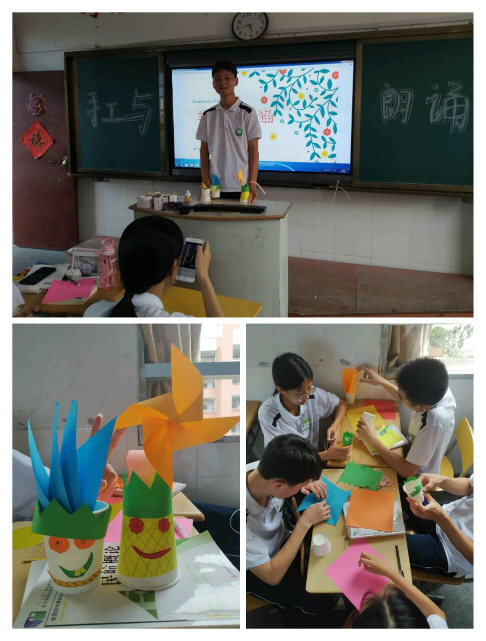 最后一组由伊宇豪同学组织,主题是“校园欺凌”。他们用手工展示了“恶”与“善”的形象对比,再以诗文朗读,宣扬真善美,呼吁同学们抵制校园欺凌,维护文明友爱的校园风气。
