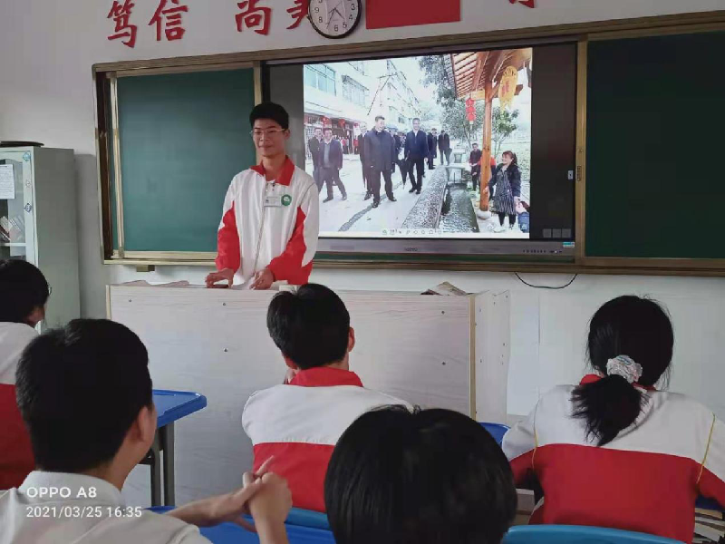赖福文同学说:“我虽然没能亲眼看到习近平总书记,但从新闻报道中感觉习近平总书记离我很近,我真切地感受到了习近平总书记的亲民作风。由此我想到了班风学风建设,我们班委一定要起带头作用,把班级建设好。”