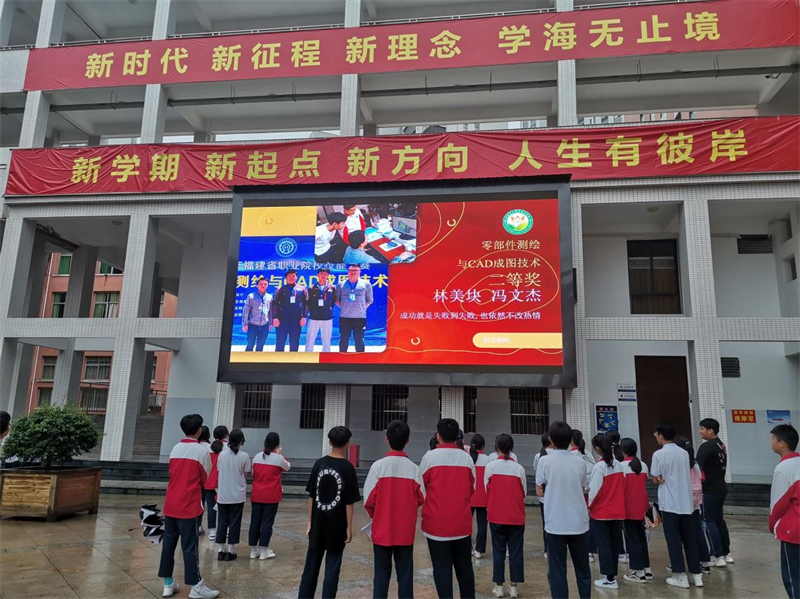 一是在校内LED大屏幕循环播放2021年福建省职业院校技能大赛中我校选手获奖情况简介及训练、比赛照片。