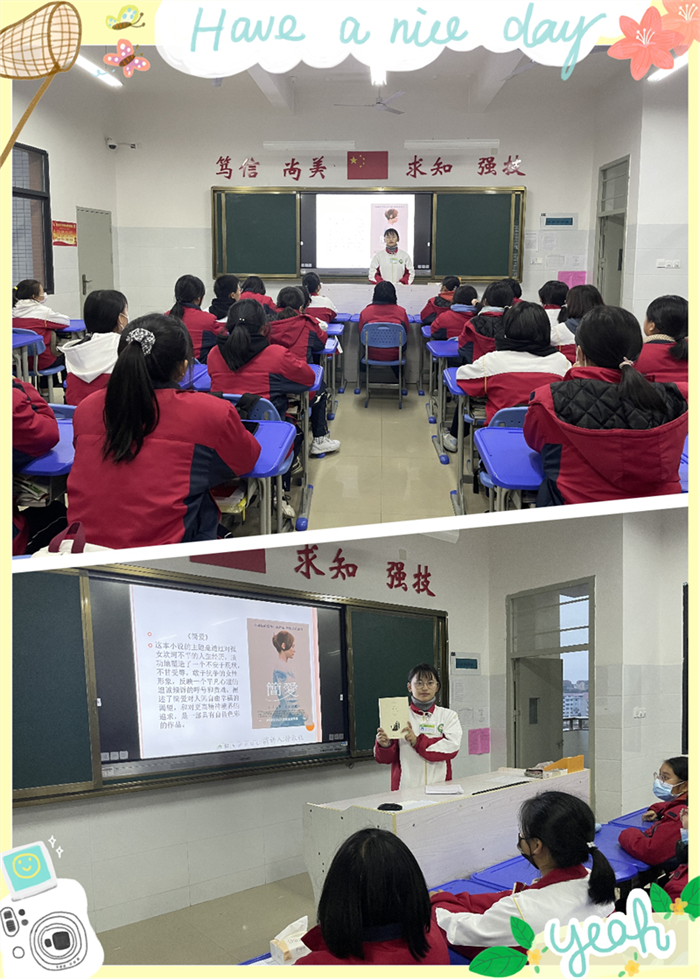 徐淑钰同学为大家带来的是名著《简爱》。《简爱》是一部具有浓厚浪漫主义色彩的现实主义小说,主要描写了简·爱与罗切斯特的爱情。全书构思精巧,情节波澜起伏。大量运用心理描写是这本小说的一大特色。