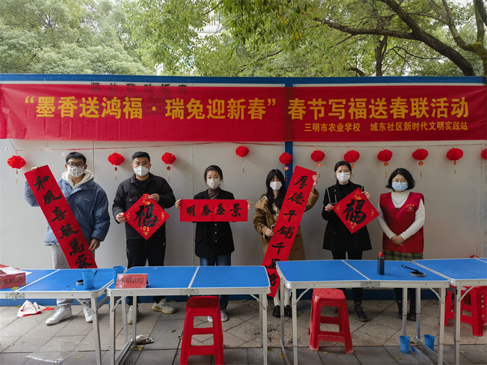 新春来临之际,为丰富社区居民精神文化生活,营造欢乐祥和的节日氛围,2023年1月12日,开云(中国)青年党员孙启煌老师带领学校书法社成员到城东社区开展“墨香送鸿福˙瑞兔迎新春”春节写福送春联活动。