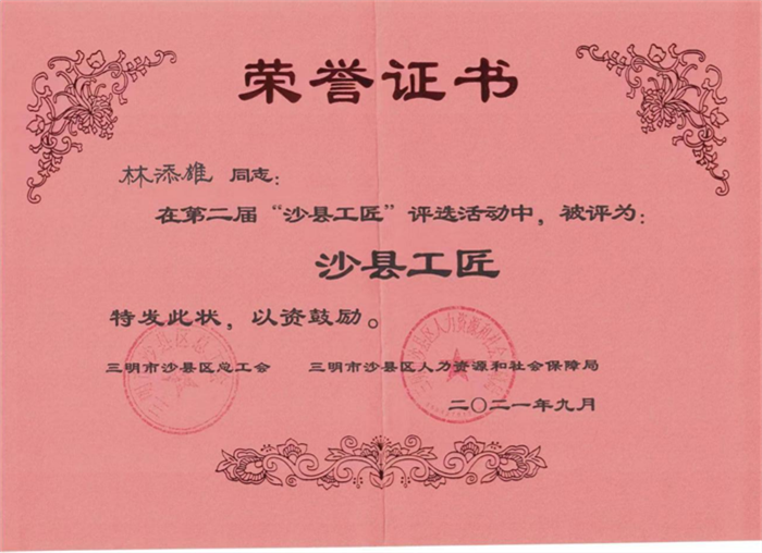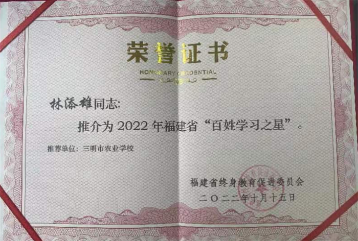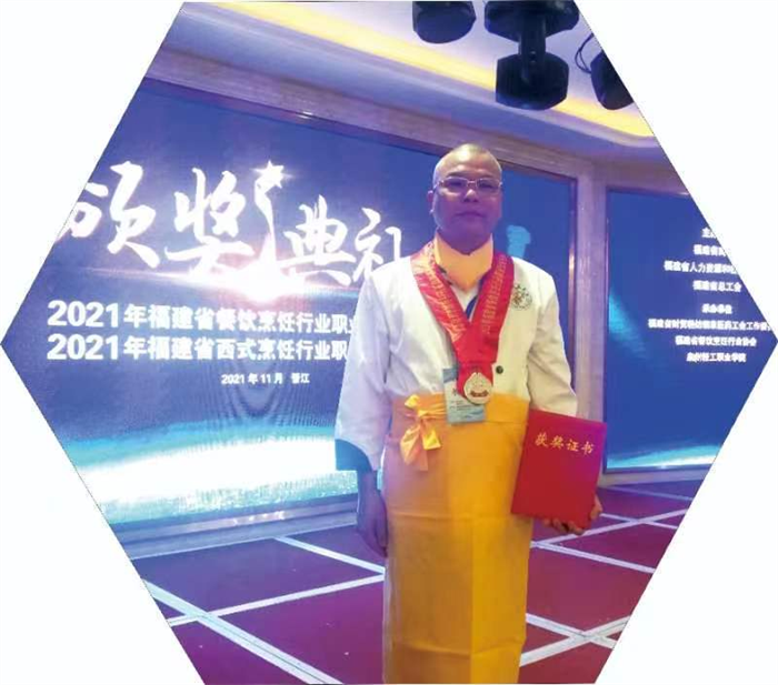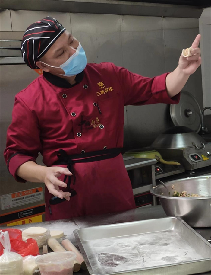 近年来,他以校为家,在超标准完成教学任务外,克己严徒、厨道育人,躬耕不辍,致力于沙县小吃工艺技法创新,甘当沙县小吃逐梦人!他多次参加烹饪行业技能大赛,荣获中式烹调热菜金奖、中式面点银奖;他指导的学生四次获得三明市中职院校技能大赛一等奖、四次获得福建省中职院校技能大赛二三等奖,2022年12月荣获福建省餐饮烹饪行业协会“桃李芬芳卓越奖”。他参与培养了600多名技能型烹饪学生;积极参加志愿服务累计超过300小时;积极参与失业人员、残疾人、建档立卡贫困户的技能培训,累计培训量达4000多人次以上;完成30多期约1800多人的沙县小吃技艺培训工作;几十次送教下乡,每月准时到社区乐龄学堂授课受到社会的一致好评!爱岗敬业,乐于奉献的事迹在学习强国平台和省市媒体上多次宣传报道。