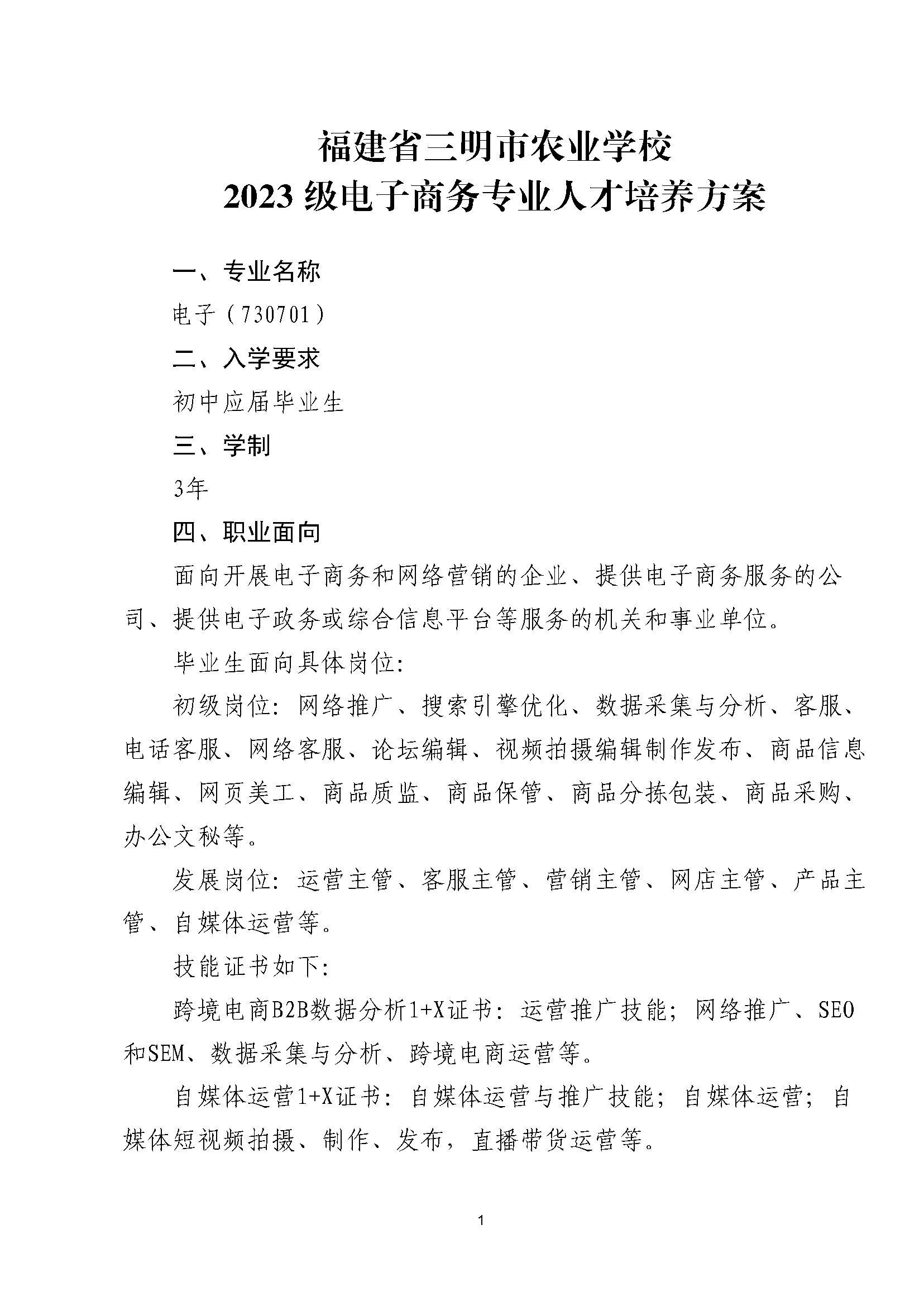 三明市农业学校动漫与游戏制作专业人才培养方案(2023)