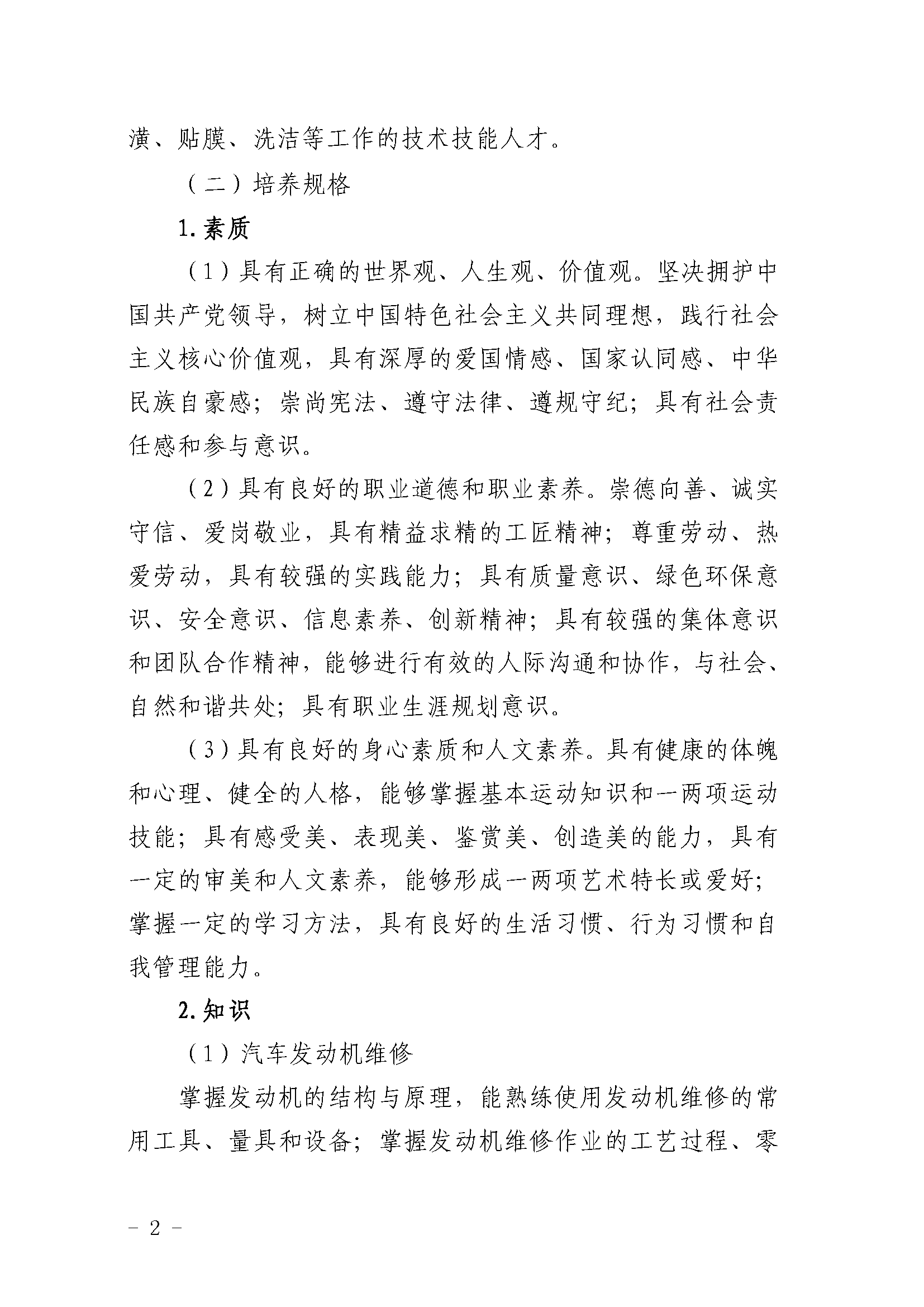 三明市农业学校汽车运用与维修专业人才培养方案(2023)