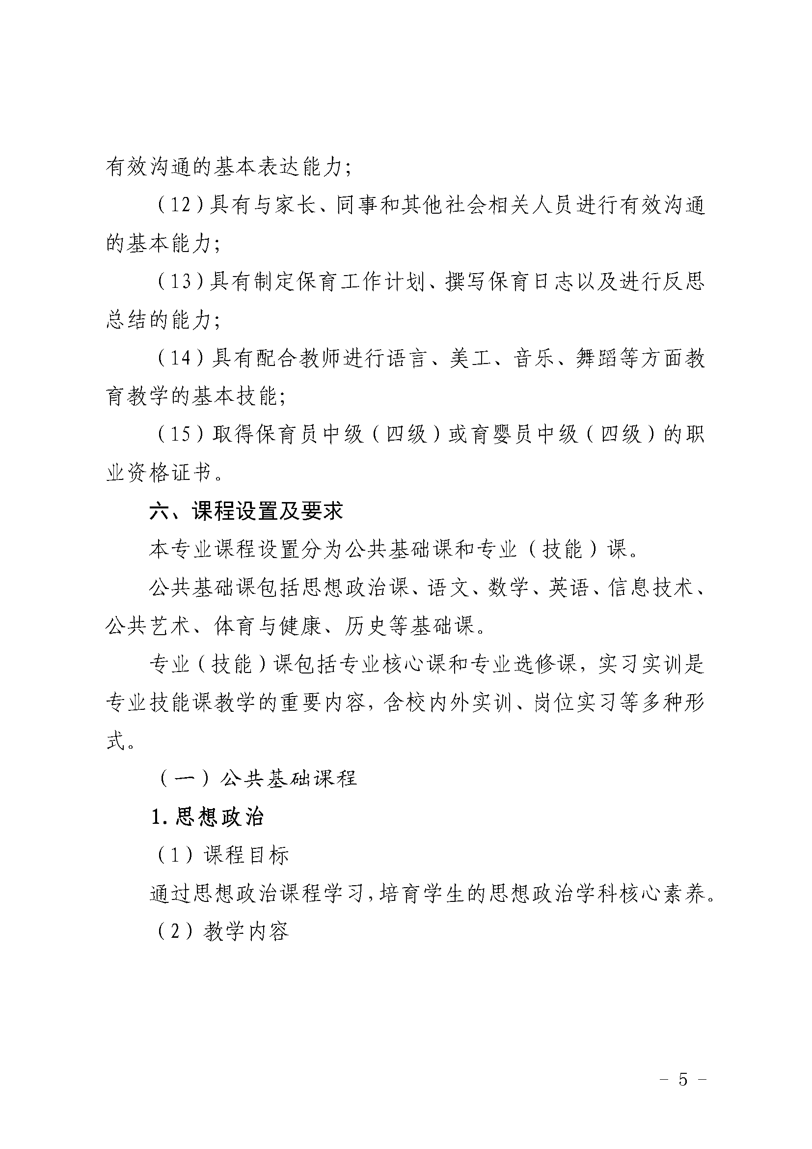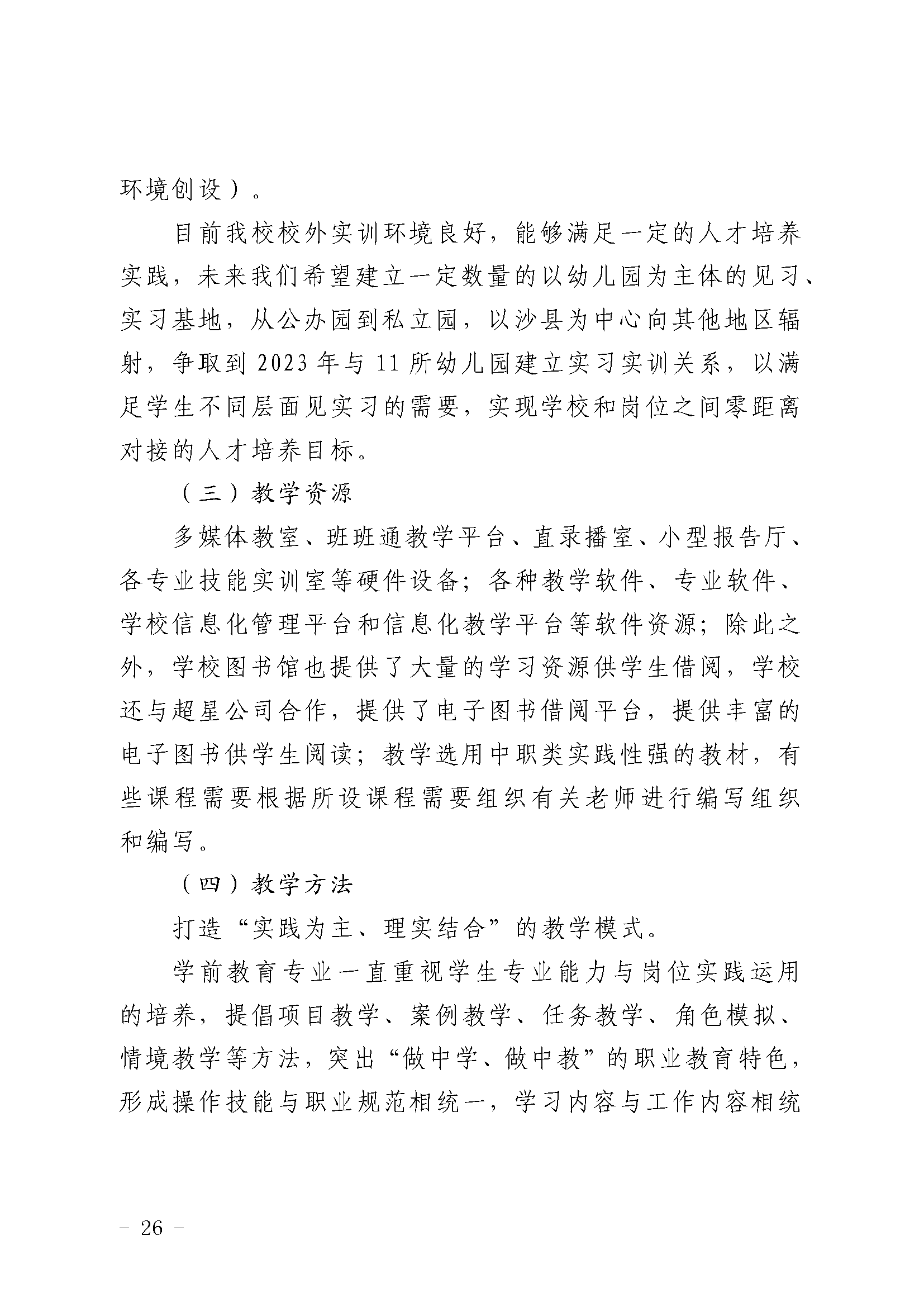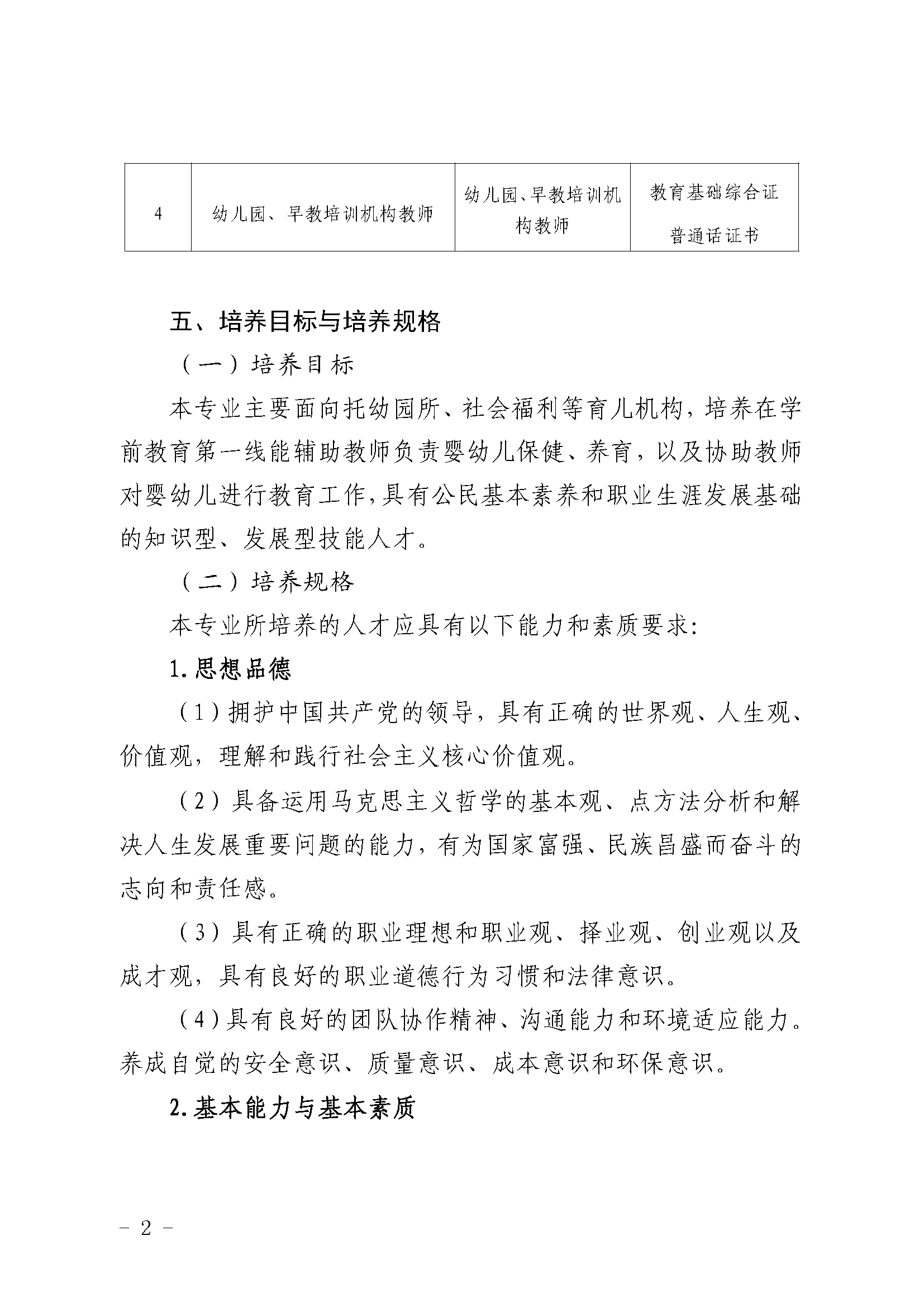三明市农业学校幼儿保育专业人才培养方案(2023)
