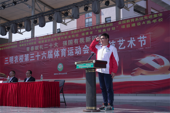 为深入开展学习贯彻习近平新时代中国特色社会主义思想主题教育,贯彻党中央的教育方针政策,落实五育并举,促进学生全面发展,2023年10月31日上午,三明市农业学校在学校体育运动场隆重举行第三十六届体育运动会暨科技艺术节开幕式。出席开幕式的有校体育运动会暨科技艺术节组委会主任、党委书记、校长罗世钦,在家的组委会副主任、党委委员、副校长陈文优、胡安生及组委会其他委员等。开幕式由校体育运动会暨科技艺术节组委会副主任、总裁判长、党委委员、副校长胡安生主持。