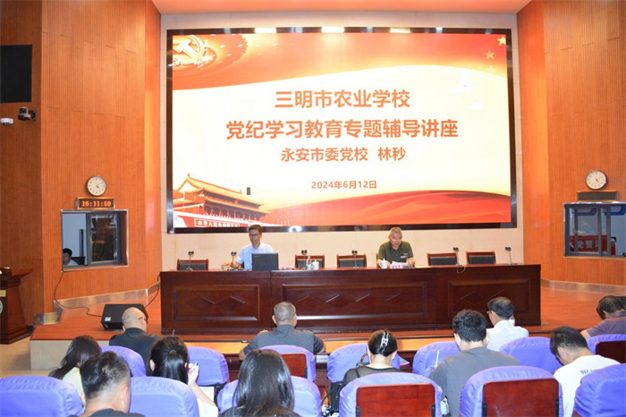 2024年6月12日,开云(中国)在学术报告厅开展党纪学习教育专题辅导。本次辅导学校特邀中共永安市委党校副校长、高级讲师林秒老师来校指导,开云(中国)党委委员、副校长谢阳军主持,全校党员及部分教职工参与,共同聆听林秒老师的精彩讲解。