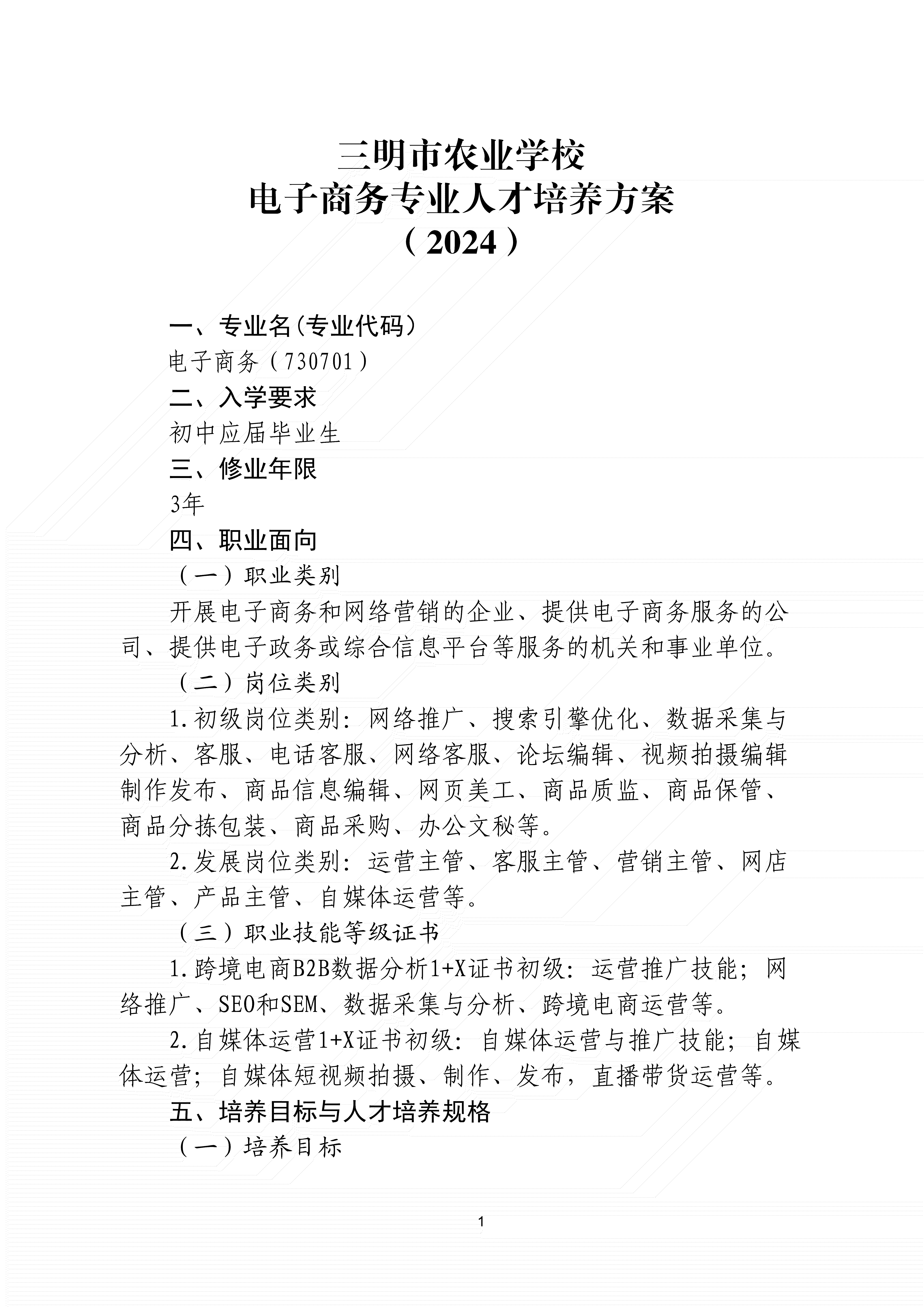 三明市农业学校动漫与游戏制作专业人才培养方案(2024)