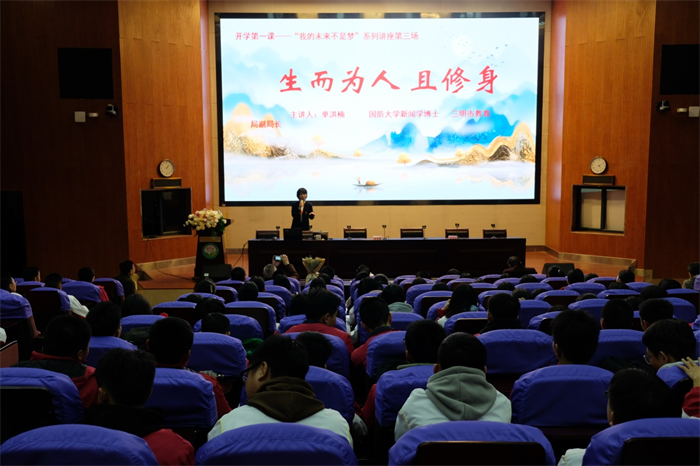 第二场讲座上,国防大学新闻学博士,市教育局副局长单洪楠结合个人成长经历从“成长和专业”“信仰和未来”两个方面修本事、修思想。她勉励同学们要珍惜时间、把握机遇,志存高远、自强不息,立志做有理想、敢担当、能吃苦、肯奋斗的新时代好青年。