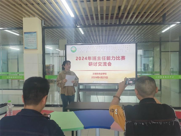 为进一步加强班主任队伍建设,落实“为班主任减负、增能、赋权”举措,积极备战三明市中等职业学校班主任能力比赛,4月25日,三明市农业学校组织市赛选手开展2024年班主任能力比赛研讨交流活动。
