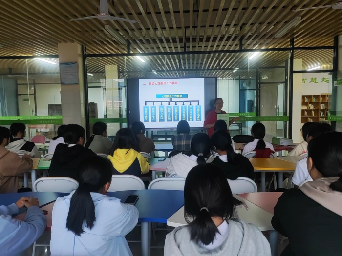 班级心理委员是学校心理健康教育工作队伍中的重要角色,是班委会成员之一,也是学校心理中心和各班同学之间的桥梁和纽带。为了更好地促进心委对工作的理解,提高心理学相关知识的运用能力,更好地发挥在心理危机预警与干预方面的作用,我校心理健康辅导中心的官容香老师对新生心理委员展开培训。官老师以其独到的见解和敏锐的洞察力,对心理委员的职责范围进行了全面而细致的阐述。她强调,作为心理委员,不仅要具备敏锐的心理洞察能力,能够及时发现并识别同学中的心理问题;更要拥有坚定的职业信念和高度的责任感,勇于担当起守护同学心灵健康的重任。