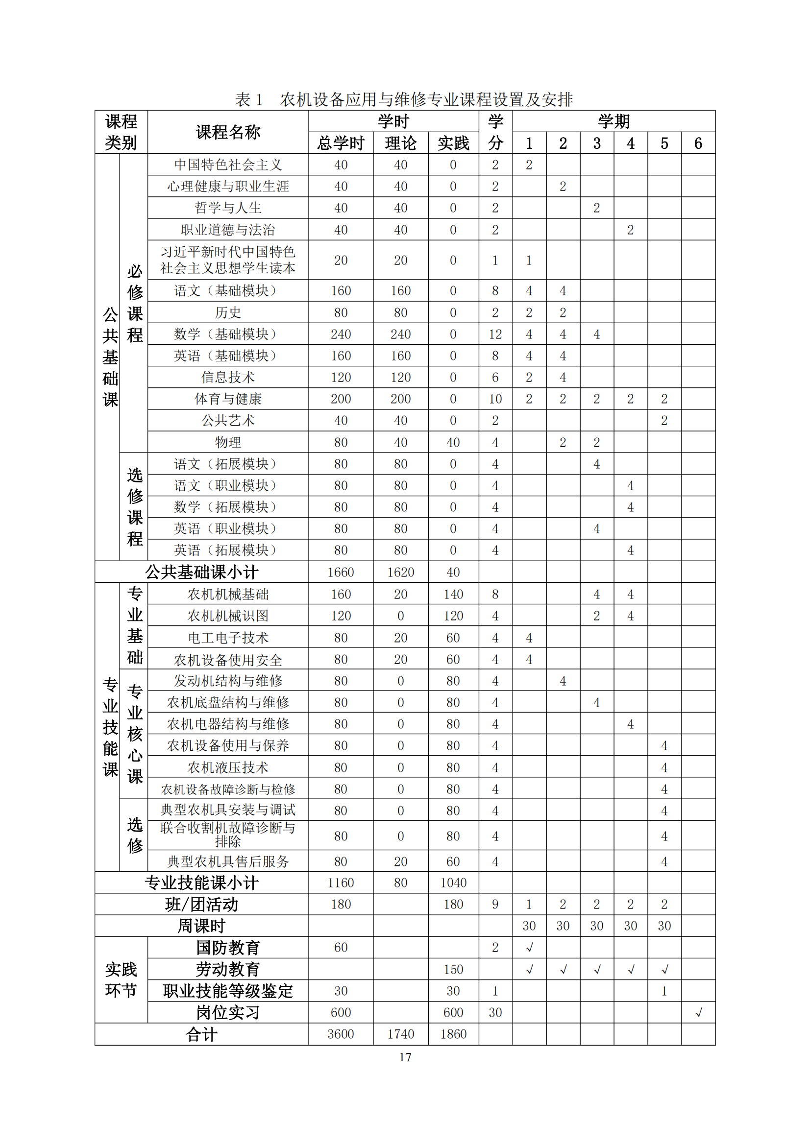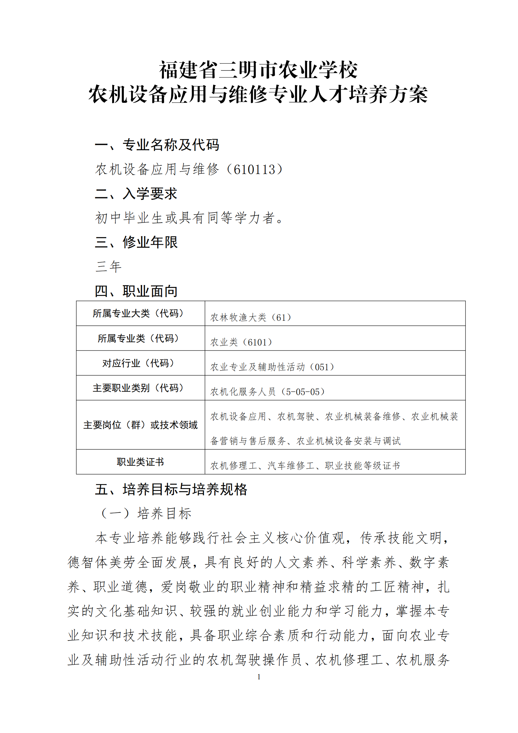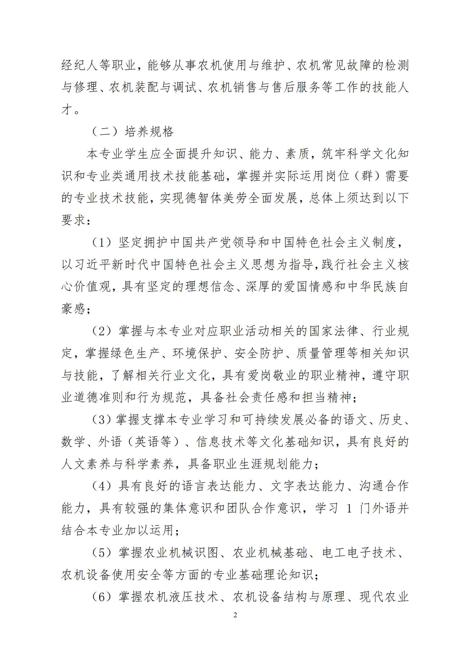 开云网页版农机设备应用与维修专业人才培养方案