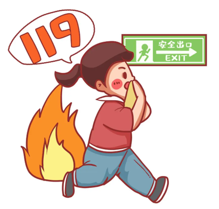 发现火情,报警要早:第一时间拨打119报警电话,清晰描述失火地点、起火物质、火势及人员被困等情况。